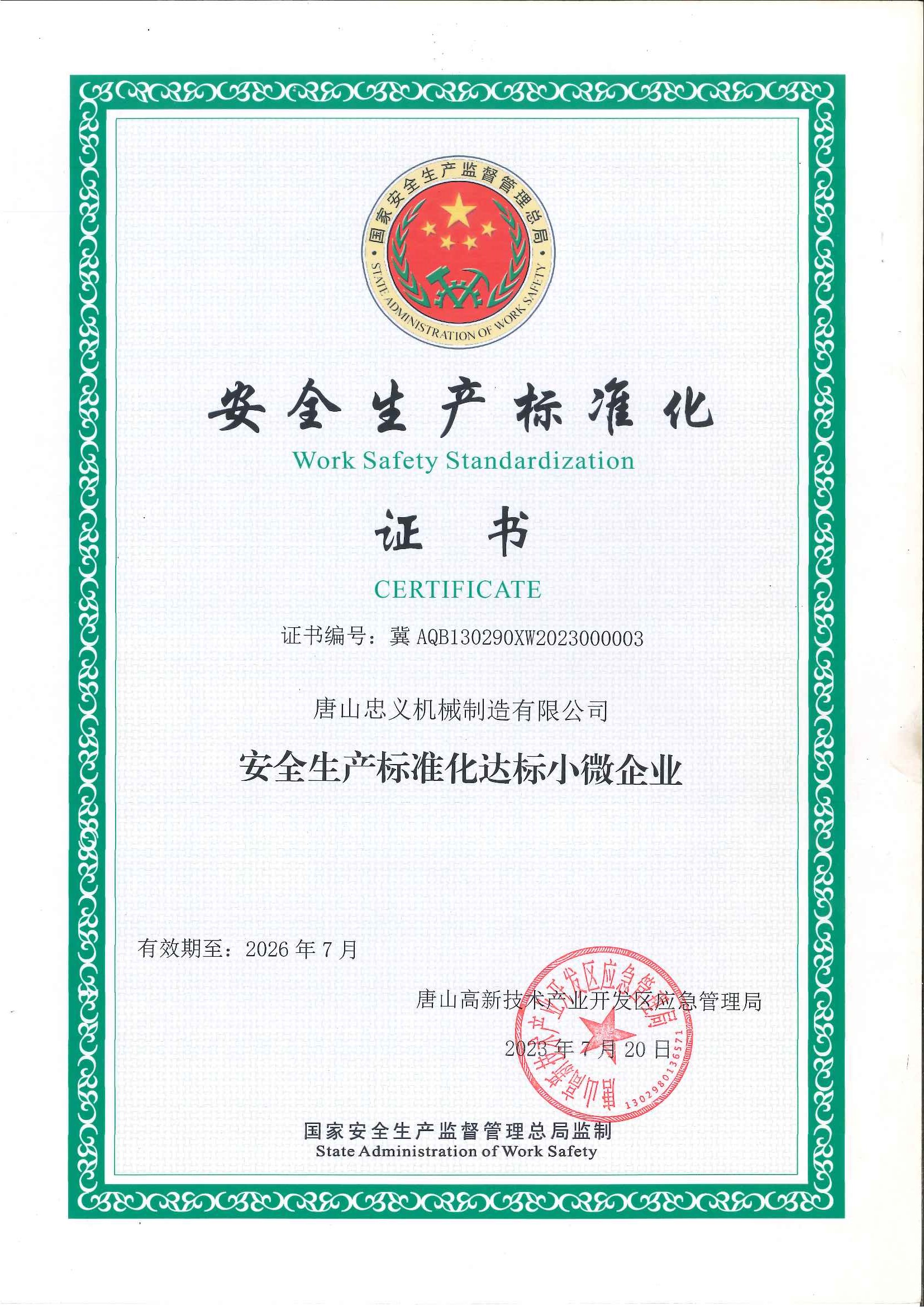 安全生產(chǎn)標(biāo)準(zhǔn)化證書新 發(fā)布時(shí)間:2025-08-18 點(diǎn)擊: 423 上一條: ISO9001質(zhì)量體系認(rèn)證 下一條: 建材機(jī)械行業(yè)榮譽(yù)證書
